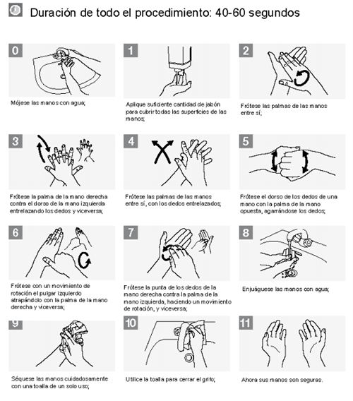 La OMS recomienda realizar el lavado de manos de la siguiente forma: