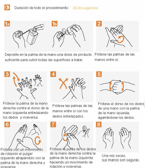 Frotar bien las manos con jabón por la palma, el dorso, los dedos y debajo de las uñas, crea una fricción que ayuda a eliminar la suciedad, la grasa y los microbios de la piel. Dado que están presentes en toda la superficie de la mano, a menudo en una concentración particularmente alta debajo de las uñas, la acción mecánica debe llegar a todos los puntos de la mano y mantenerse durante 40-60 segundos.