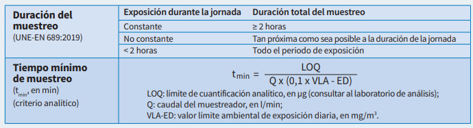 El tiempo de muestreo será lo más próximo al periodo de referencia del valor límite ambiental (VLA).