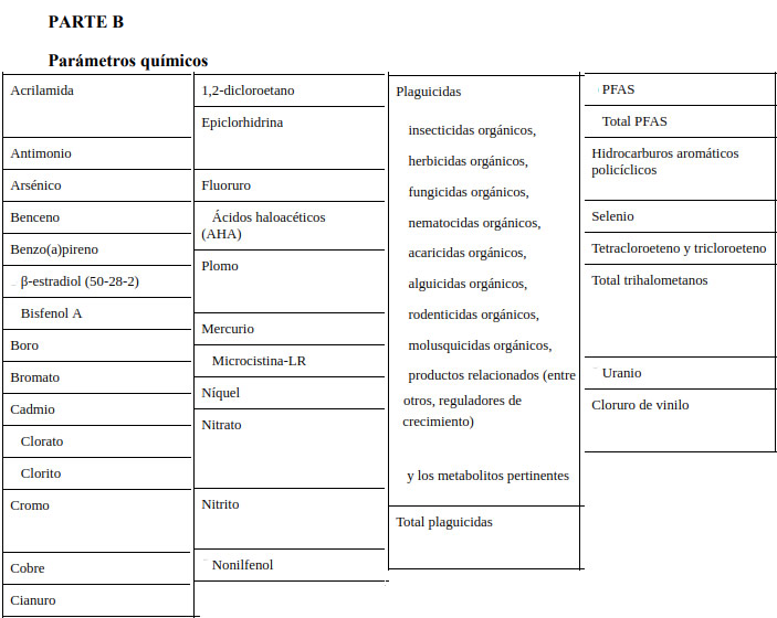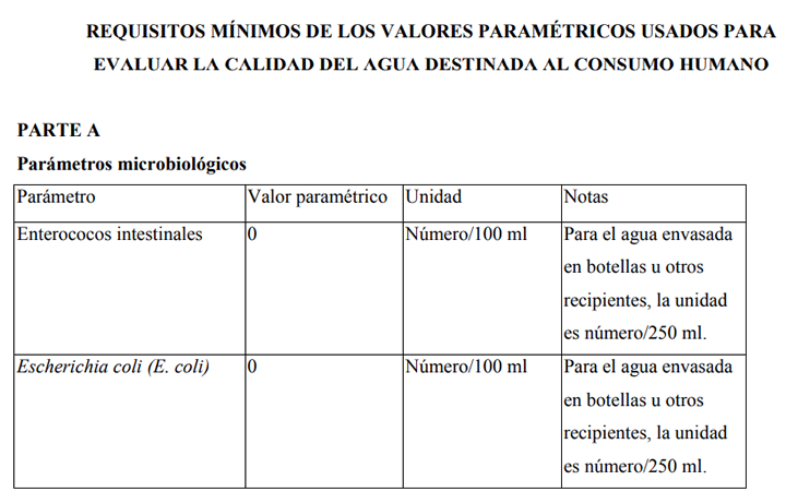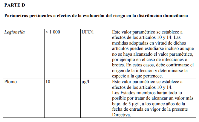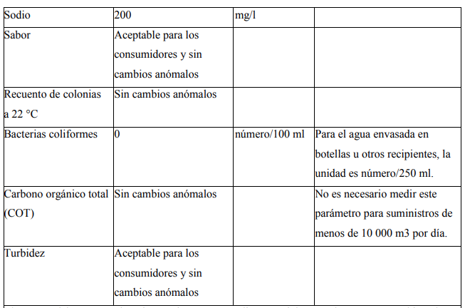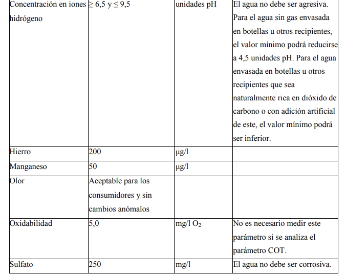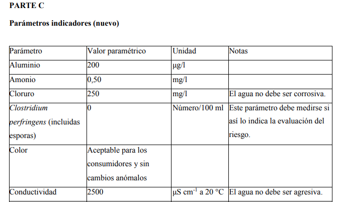 Los valores aplicables a las aguas destinadas al consumo humano en relación con los nuevos parámetros establecidos deberán cumplirse: