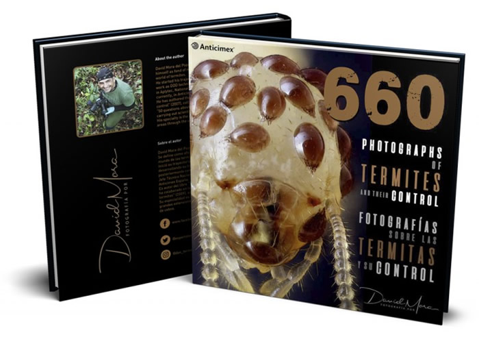 David Mora, experto en termitas y autor de magníficas fotografias, ha publicado un nuevo libro con impactantes imágenes de estos insectos: "660 Fotografías sobre las termitas y su control". Se trata de una edición limitada a 1.000 ejemplares, con contenidos únicos sobre tratamientos y experiencias en el control de termitas. Una obra más que interesante para cualquier profesional del control de plagas.