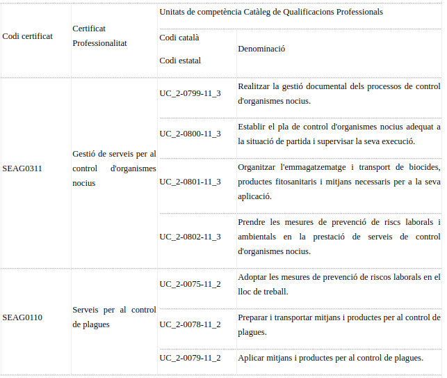Catalunya convoca proceso de acreditación de competencias adquiridas a través de la experiencia laboral y/o de vías no formales de formación correspondientes a las cualificaciones profesionales: Gestión de servicios para el control de organismos nocivos y Servicios para el control de plagas. Son, en total, 50 plazas para el ámbito profesional Biocidas, y el periodo de preinscripción es del 1 al 28 de septiembre de 2020.
