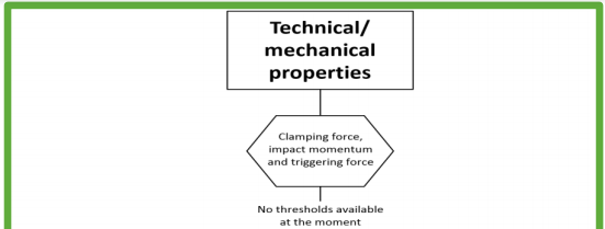 El primer paso del procedimiento es medir las fuerzas mecánicas de la trampa y la correcta calibración de las partes de la misma. Esto incluye la determinación de la fuerza de sujeción y del momento de impacto, que determinan cómo de rápida es la muerte del animal, asi como la fuerza de activación que ha de ejercer el animal para disparar la trampa. - Evaluación del impacto sobre el bienestar animal: