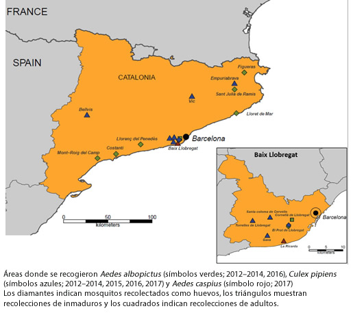 Ae. Caspius (recolectado en el área de Barcelona en 2017) fue completamente susceptible al DDT y a la deltametrina (ambos 100% de mortalidad). No se realizaron pruebas con otras clases de químicos.
