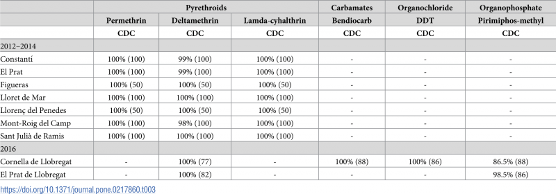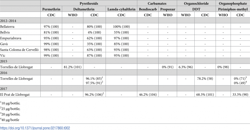 Fuente: Phenotypic insecticide resistance in arbovirus mosquito vectors in Catalonia and its capital Barcelona (Spain), PlosOne