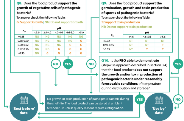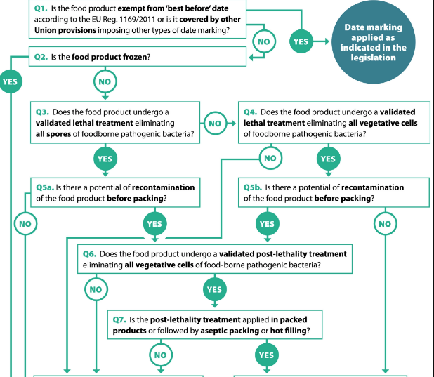Según la EFSA, el tipo de marcado de la fecha debe decidirse especificamente para cada producto. Asimismo, la identificación de los peligros microbiológicos debe ser específica del producto y considerar los microorganismos patógenos o deteriorantes capaces de crecer en el alimento durante el almacenamiento y hasta su consumo, teniendo en cuenta las características propias del alimento y las condiciones razonablemente previsibles de distribución, almacenamiento y uso de los alimentos.