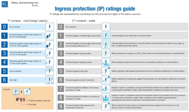 Para distinguir los diferentes grados de protección de los equipos, una referencia es el Grado de protección IP, desarrollado por la International Electrotechnical Commission (IEC) y especificado en la norma internacional CEI 60529.