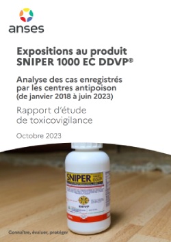 Anses. (2023). Expositions au produit SNIPER 1000 EC DDVP®. Étude rétrospective des observations enregistrées par les Centres antipoison et de toxicovigilance français du 1er janvier 2018 au 30 juin 2023. (Saisine n°2023-AUTO-0160). Maisons-Alfort : Anses, 28p.